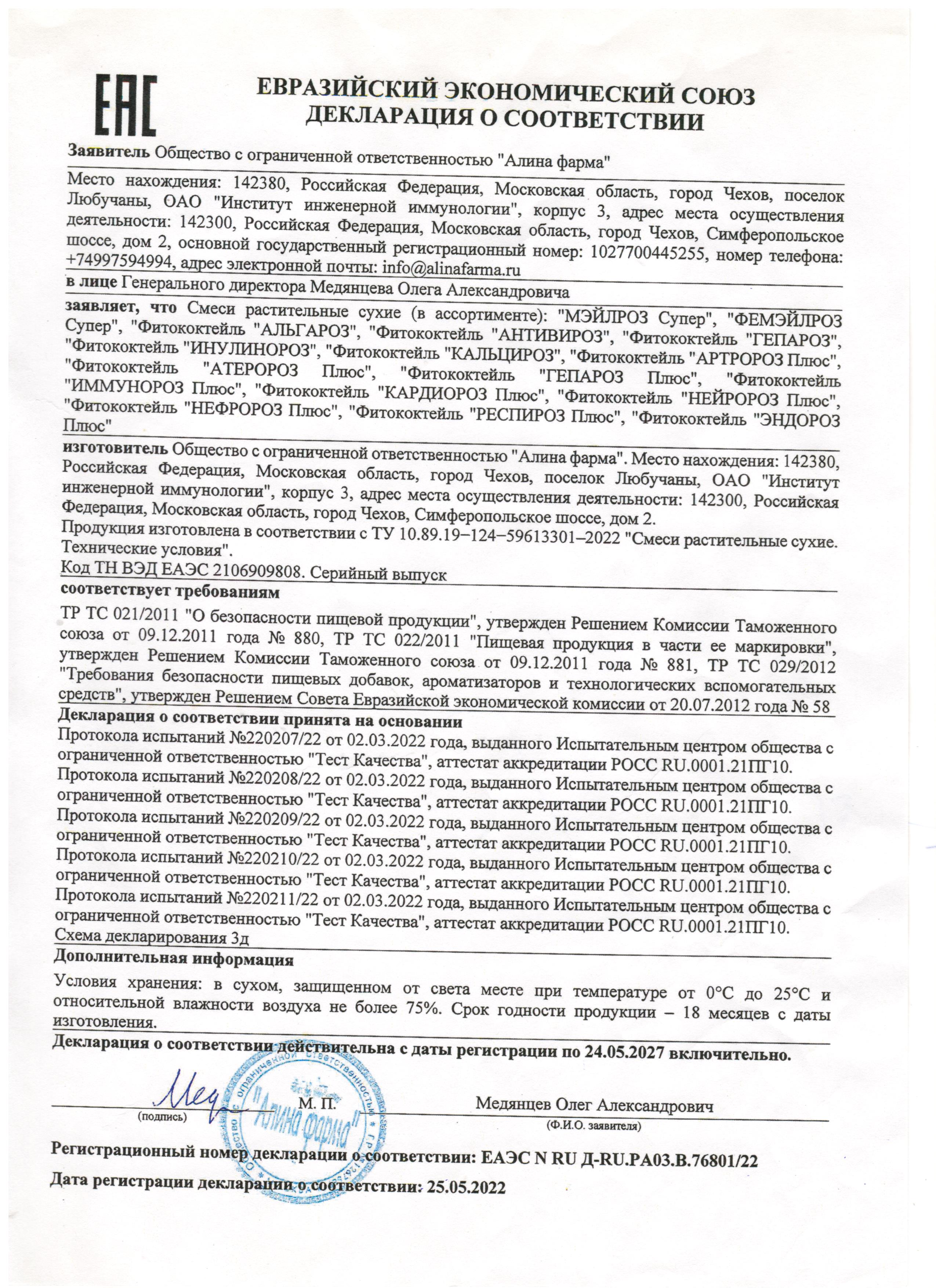 Изготовитель: ООО «Алина фарма», 142380, Россия, Московская обл., Чеховский р-н, пос. Любучаны, ОАО «Институт инженерной иммунологии», корп. 3, эксклюзивно для программы «Родник здоровья».